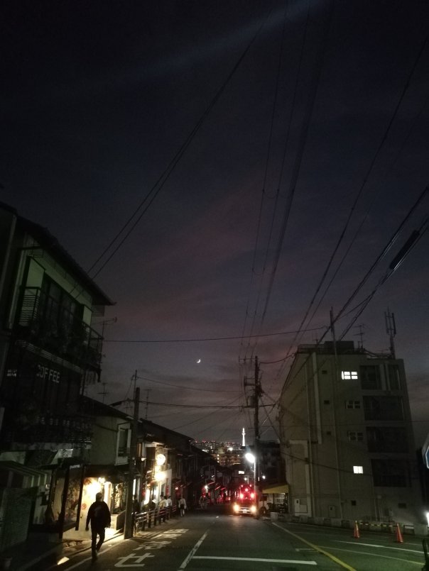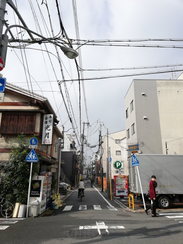Sous une toile de câbles tissés par l’humanité en éternelle quête d’urbanisation, Kyoto s’alangui